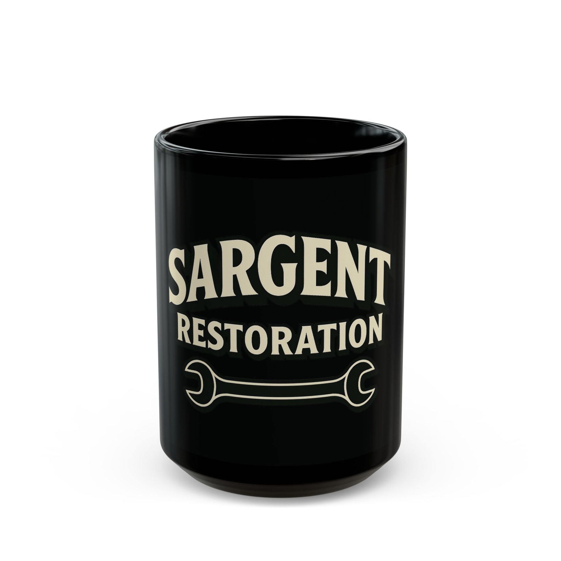Custom Sargent Restoration Mug | Personalized Black Coffee Cup, Gift for Mechanics, Workshop Decor, Father's Day, Unique Gift Idea